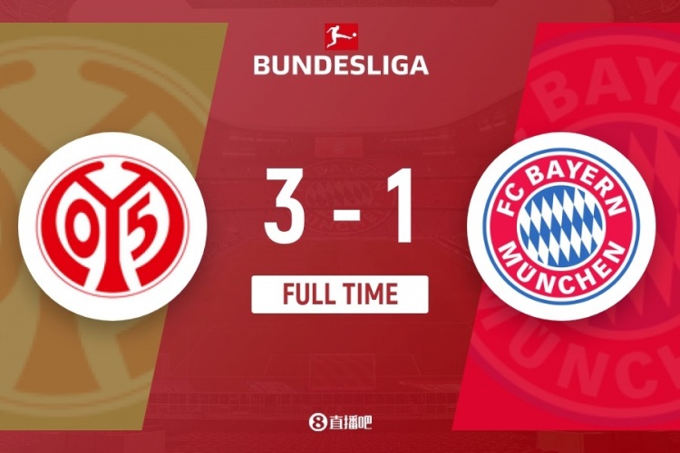伤停补时5分钟。全场比赛结束,拜仁1-3美因茨。