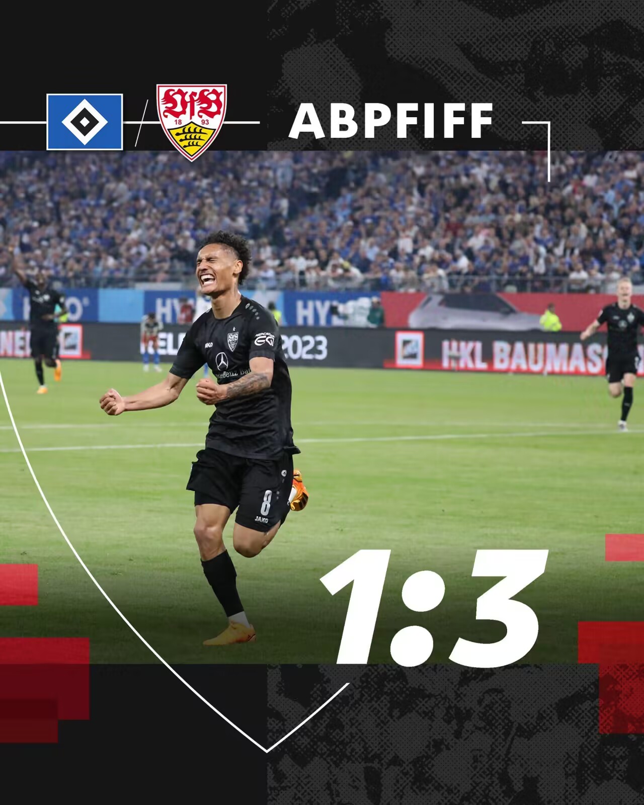 最终全场比赛结束,斯图加特3-1击败汉堡,总比分6-1成功保级。