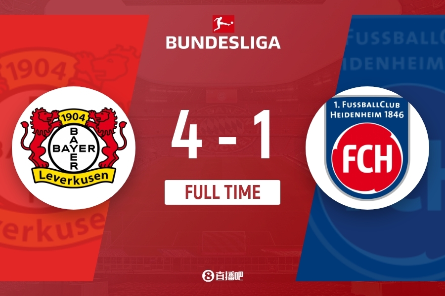 德甲-勒沃库森4-1海登海姆升第二 博尼法斯双响药厂6胜1平三线不败
