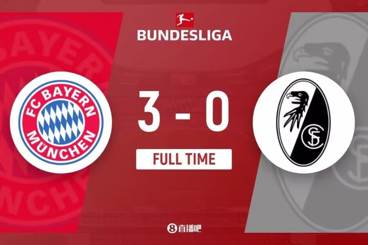 下半场伤停补时4分钟,全场结束,最终拜仁3-0弗赖堡。