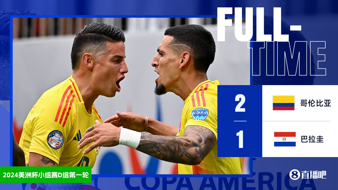 全场比赛结束,哥伦比亚2-1巴拉圭。