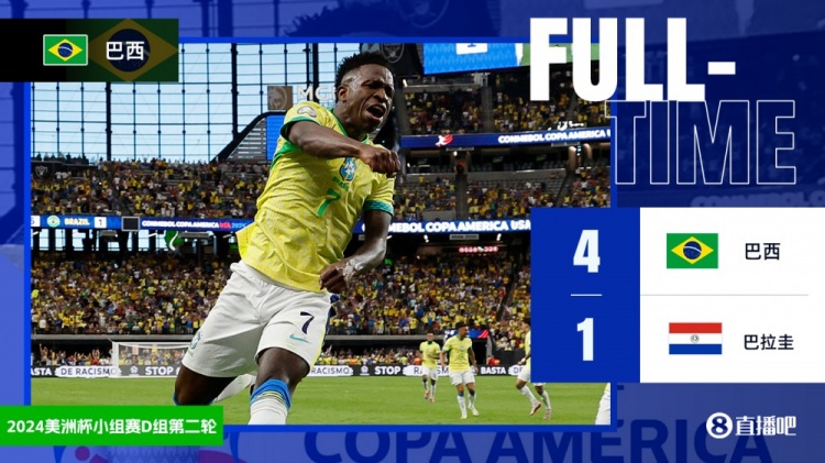全场比赛结束,最终巴西4-1巴拉圭。