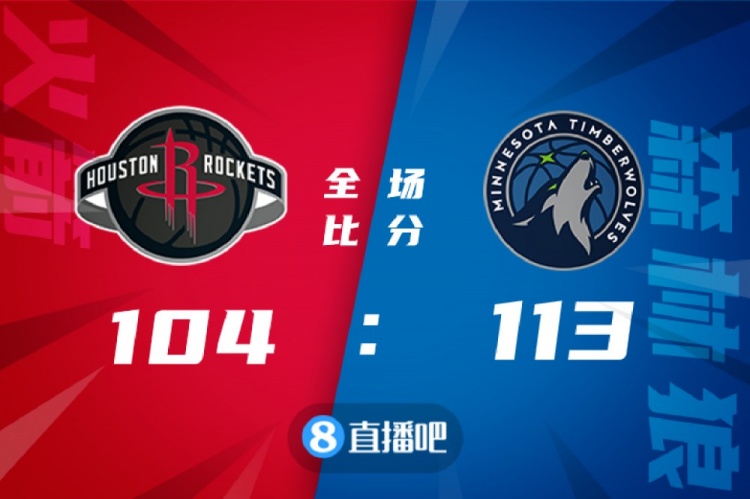 比赛上来,双方就陷入到拉锯战,场上比分交替领先,次节火箭逐渐占据场上主动并取得领先,不过及时调整的森林狼此后还是将比分追了回来,半场结束时火箭领先2分;下半场火箭逐渐将分差拉开到了两位数,不过在第三节后半段森林狼打出一波11-0的小高潮实现反超,末节火箭的命中率急剧下滑,森林狼抓住机会建立起领先优势,之后的比赛火箭也没有再获得机会,最终森林狼力克火箭,送给后者13连败。