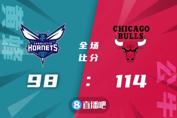上半场,双方势均力敌,比分咬得很紧,道苏姆高效输出,黄蜂多点开花给出回应。公牛轮番冲击内线得手取得微弱优势,半场战罢公牛53-49领先。下半场,公牛开始发力,内外开花助将分差拉开到两位数,末节黄蜂展开反击,但公牛稳扎稳打,将优势保持到了最后,鲍尔连续吃到技犯离场。最终,公牛114-98击败黄蜂,主场过关。