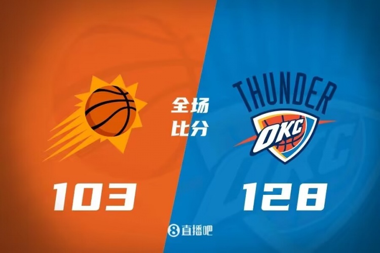 首节一上来双方迅速找到进攻节奏,太阳三巨头轮番取分,阿伦里突外投续上火力,雷霆全民皆兵强势回应,首节结束时雷霆领先2分,次节回来,双方你来我往继续对攻,但中段太阳进攻出现停滞,雷霆抓住机会拉开比分,半场战罢,雷霆确立11分优势。易边再战后太阳进攻彻底断电,单节仅得到21分,基迪火力全开单节独得13分,率领雷霆继续扩大优势,三节结束后雷霆已经领先21分,末节上来,太阳换上主力后追分未果,选择提前投子认负,最终雷霆128-103大胜对手。