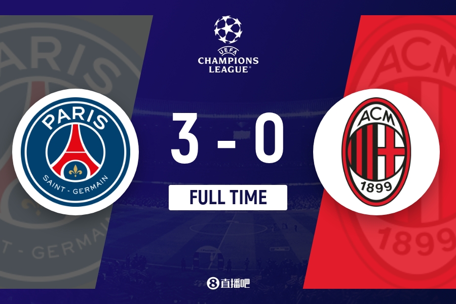 下半场伤停补时4分钟,全场比赛结束,最终巴黎圣日耳曼3-0AC米兰。