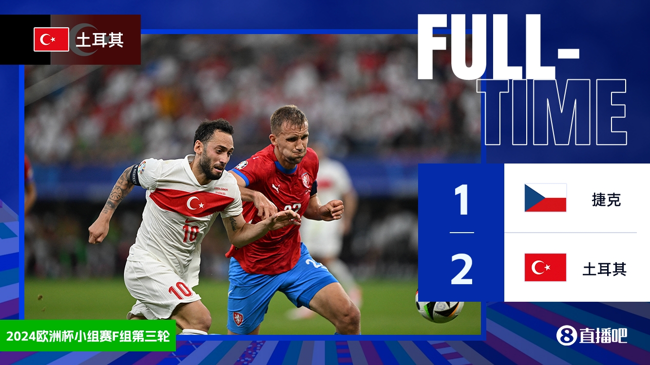 土耳其补时绝杀!第90+4分钟,土耳其的反击机会前场以多打少,科克库分球,托松禁区内横向盘带后劲射得手,捷克1-2土耳其!↓