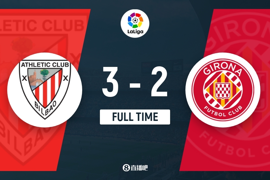 最终全场比赛结束,毕尔巴鄂3-2击败赫罗纳。