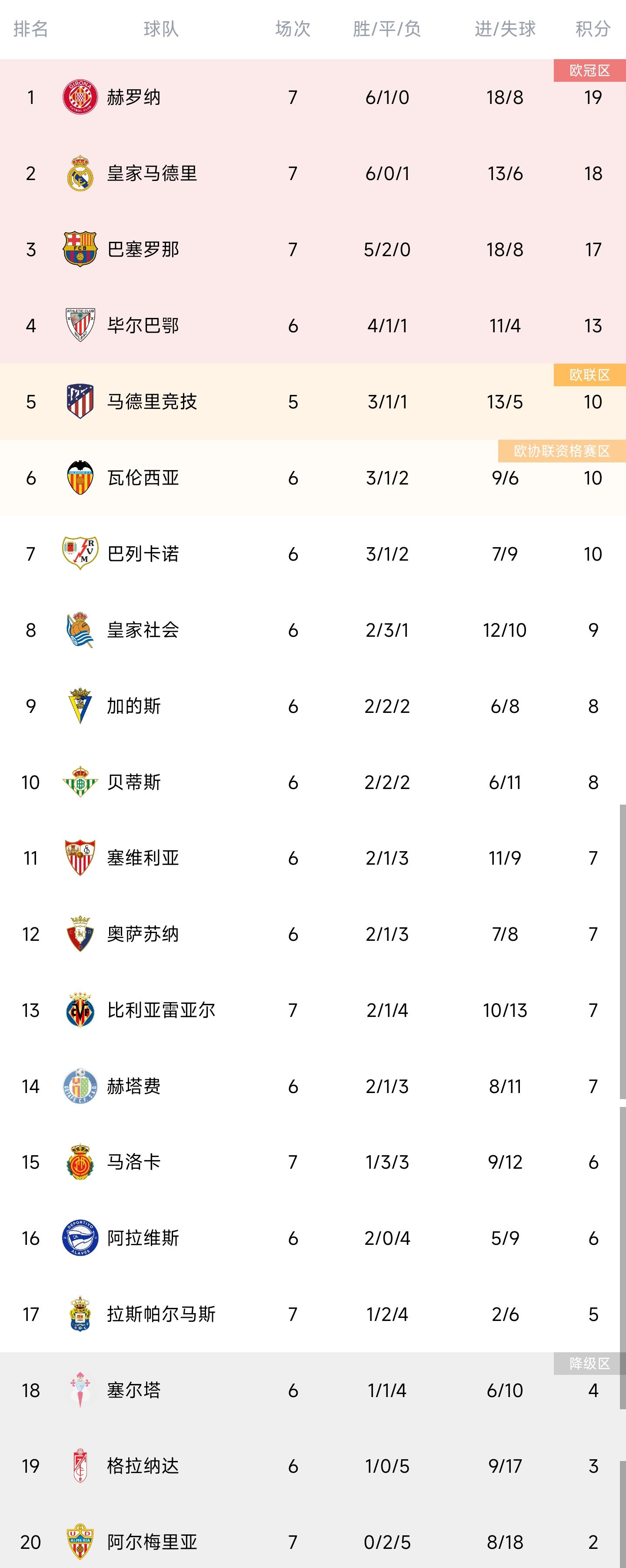 西甲 瓦伦西亚 皇家马德里 巴塞罗那 塞维利亚 马德里竞技 比利亚雷亚尔 马拉加 皇家社会 毕尔巴鄂竞技 赫塔费 莱万特 皇家贝蒂斯 塞尔塔 西班牙人 格拉纳达 拉科鲁尼亚 萨拉戈萨 桑坦德竞技 皇家奥维耶多 特内里费