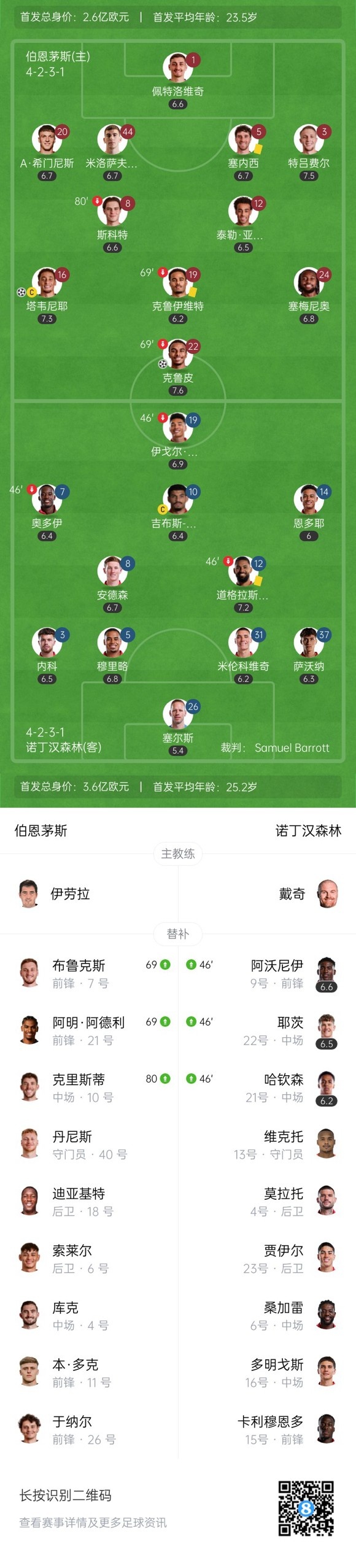双方首发以及换人信息: