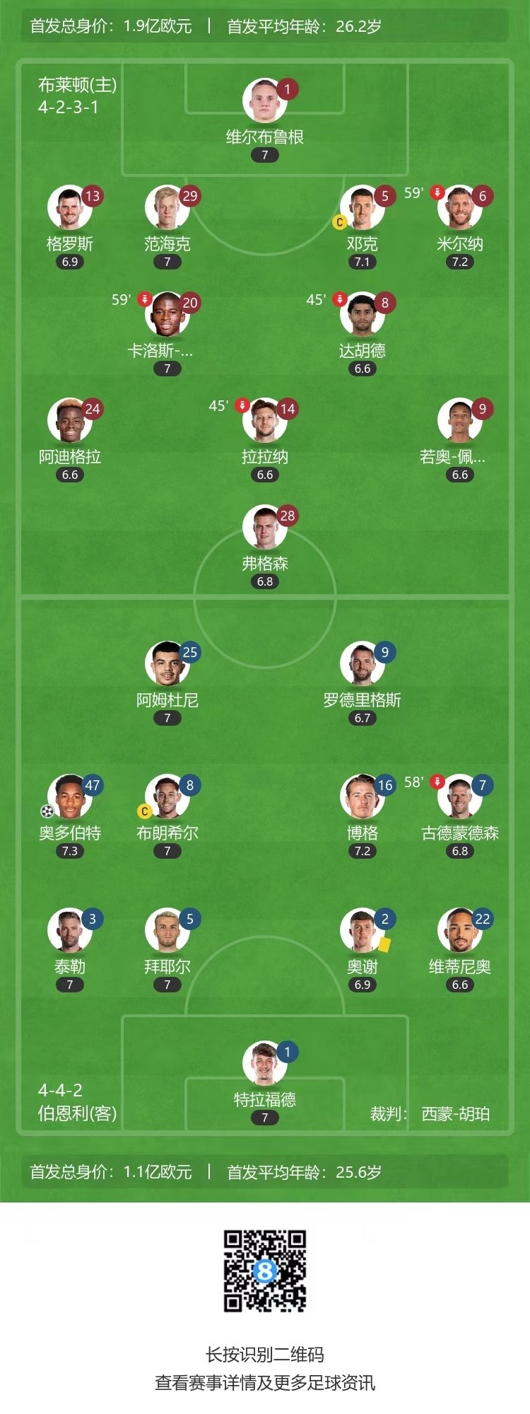 第35分钟,布莱顿右路的传中,中路范海克的头球偏出↓