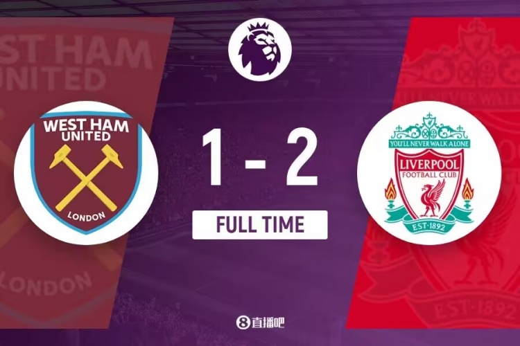 全场比赛结束,利物浦2-1西汉姆。