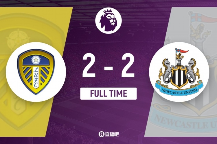 伤停补时6分钟。全场结束,纽卡斯尔2-2利兹联。