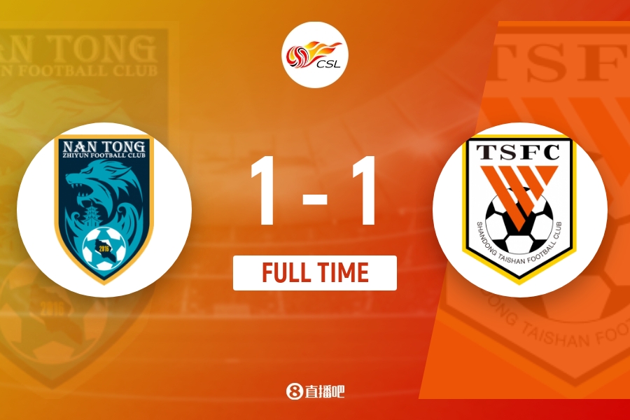 下半场伤停补时4分钟,全场比赛结束,最终山东泰山1-1南通支云。