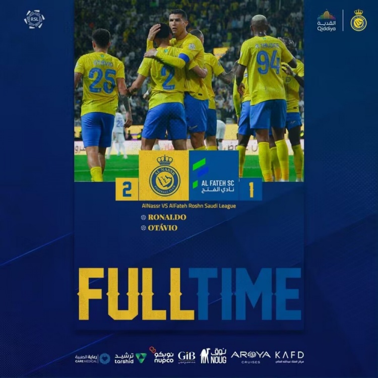 利雅得胜利出场阵容:36-纳贾尔(27’33-阿卜杜拉)、2-哈纳姆(81’5-阿姆里)、78-奥贾米、27-拉波尔特、15-特莱斯、17-哈巴利、25-奥塔维奥(94’14-纳吉)、77-布罗佐维奇、94-塔利斯卡、10-马内、7-C罗