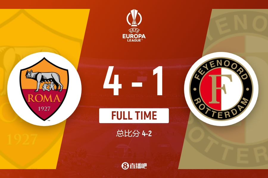 4月21日讯 北京时间4月21日凌晨3:00,欧联杯1/4决赛次回合,罗马坐镇主场迎战费耶诺德。上半场维纳尔杜姆伤退,沙拉维失单刀;下半场斯皮纳佐拉破门,克里斯坦特进球被吹,派尚为费耶诺德扳平比分,迪巴拉建功,常规时间罗马2-1费耶诺德,总比分2-2。加时赛沙拉维和佩莱格里尼破门,圣地亚哥-吉梅内斯加时赛最后时刻蹬踹对手被直红罚下,最终罗马4-1费耶诺德,总比分4-2进四强,将战勒沃库森。