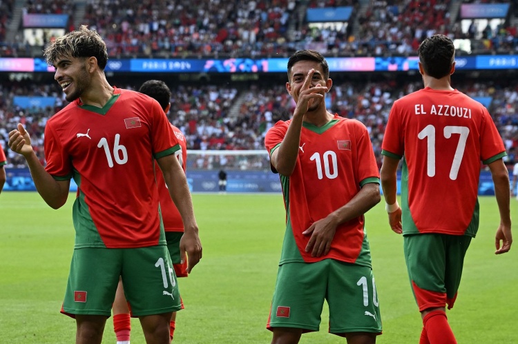 8月2日讯 北京时间8月2日21:00 奥运男足1/4决赛,摩洛哥U23对阵美国U23。上半场比赛,拉希米造点亲自命中;下半场比赛,阿克霍马奇与阿什拉夫破门,毛胡布最后时刻点射锁定胜局。。