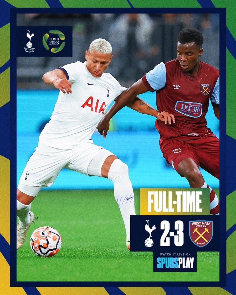 友谊赛-热刺2-3西汉姆 热刺狂射30脚&16个角球进2球铁锤4射进3球
