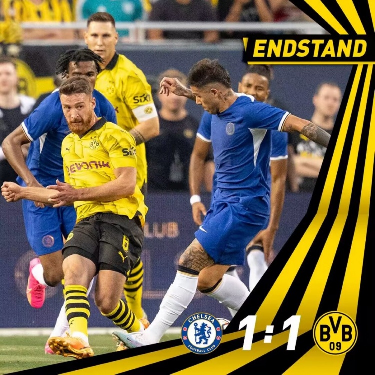 全场比赛结束,切尔西1-1多特蒙德。