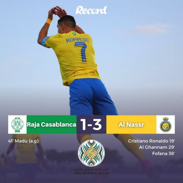 8月6日讯,北京时间8月6日23:00,阿拉冠1/4决赛,拉加竞技对阵利雅得胜利。上半场,塔利斯卡助攻C罗破门为利雅得胜利首开纪录,随后哈纳姆、弗法纳连入两球扩大比分优势,马杜不慎自摆乌龙!下半场,双方都未能把握住进球机会,C罗射门中柱。全场比赛结束,利雅得胜利3-1拉加竞技,8月9号利雅得胜利半决赛对阵巴格达警察!