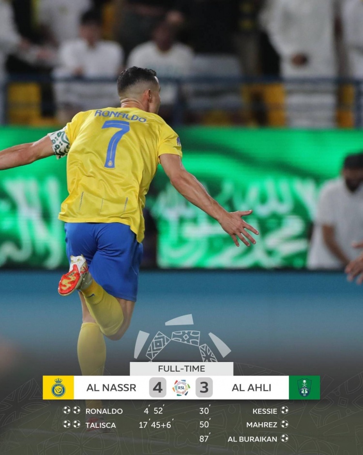 沙特联-C罗双响塔利斯卡2射1传 利雅得胜利4-3吉达国民取5连胜