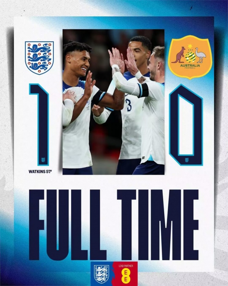 友谊赛-英格兰1-0澳大利亚 沃特金斯铲射制胜格拉利什送助攻