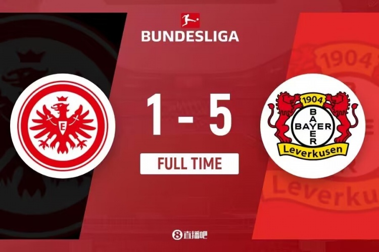 下半场补时5分钟,法兰克福1-5勒沃库森。