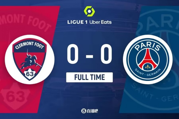 全场比赛结束,巴黎0-0克莱蒙。
