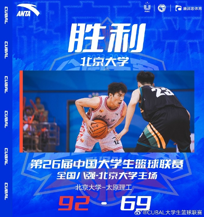 6月9日讯 CUBAL全国八强赛首回合,北京大学主场迎战太原理工大学。