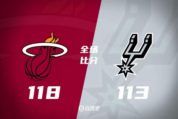 首节开打后两队短暂试探,主场作战的马刺率先发力,多点开花的他们连续打出得分高潮,热火进攻滞涩单节仅得到14分,首节结束时马刺确立14分优势,次节回来,马刺稳扎稳打扩大优势,双方分差一度接近20分,中段热火找到进攻状态,邓肯-罗宾逊单节砍下12分,热火回敬17-0进攻高潮,半场战罢,热火将分差追至3分。易边再战后乐福突然爆发单节贡献12分,热火一波14-3实现反超,马刺及时复苏稳住局势,三节结束后马刺依然领先2分,末节决战,文班和凯尔登轮番发力,马刺将分差拉开到两位数,热火打出14-2小高潮再度反超,决胜时刻理查德森连得5分,马刺回天乏术,最终热火118-113力克对手迎来五连胜,同时送给马刺五连败。