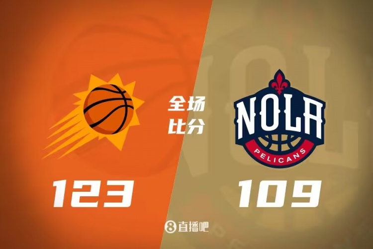 比赛开始,双方上来就展开对攻战,太阳三巨头状态火热,尤其布克里突外投迅速上双,而鹈鹕首发五虎也状态不错能给出回应,随后布克手感炸裂单节轰下25分,太阳轰出41分建立双位数领先,次节鹈鹕进攻端断电半节仅得4分,太阳顺势拉开20分以上领先,好在锡安联手瓦兰接连攻击内线止血,半场鹈鹕落后17分。下半场,双方继续对攻,布克继续保持住自己的火热手感,单节再砍20分,但麦科勒姆和英格拉姆也状态回暖回应,三节结束太阳领先20分,末节阿伦连中3记三分,太阳一波14-2直接拉开30分以上领先,随后双方逐步换上替补练兵,最终太阳123-109大胜鹈鹕,拿到4连胜。