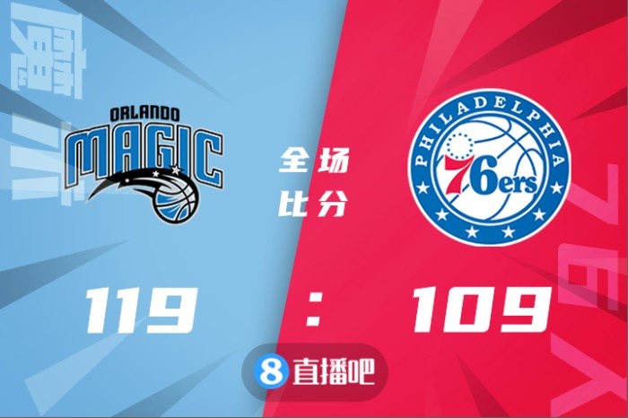开场后76人率先进入状态以8-0开局,哈登、哈里斯和恩比德三人状态不错轮番砍分,场上分差早早被拉大到两位数,在首节末段靠着瓦格纳兄弟的发挥魔术逐渐扎到节奏。第二节76人依靠强攻内线一度将分差拉大到21分,随后魔术不断提速,并且他们在三分线外也找到感觉,他们在半场结束时将分差缩小到10分。下半场回来76人又是以8-0开局,但是魔术在班凯罗的带领下掀起反扑,虽然哈登频频命中三分,但魔术外线全面开花,在三节结束时反超4分。最后一节虽然依旧是76人抢得开局,但大瓦格纳突然爆发独得10分帮助魔术扭转局势,此后76人进攻乏力始终无法追上比分,最终魔术119-109逆转终结76人7连胜。
