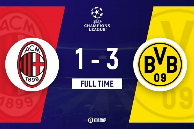下半场补时6分钟。最终全场比赛结束,米兰1-3多特。