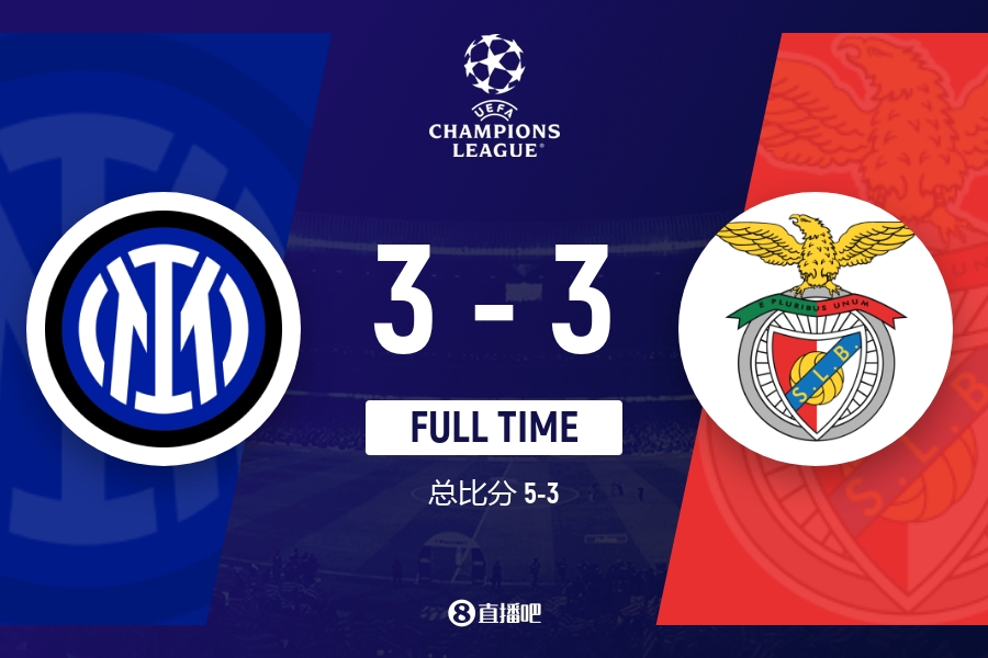 全场比赛结束,国米3-3本菲卡。