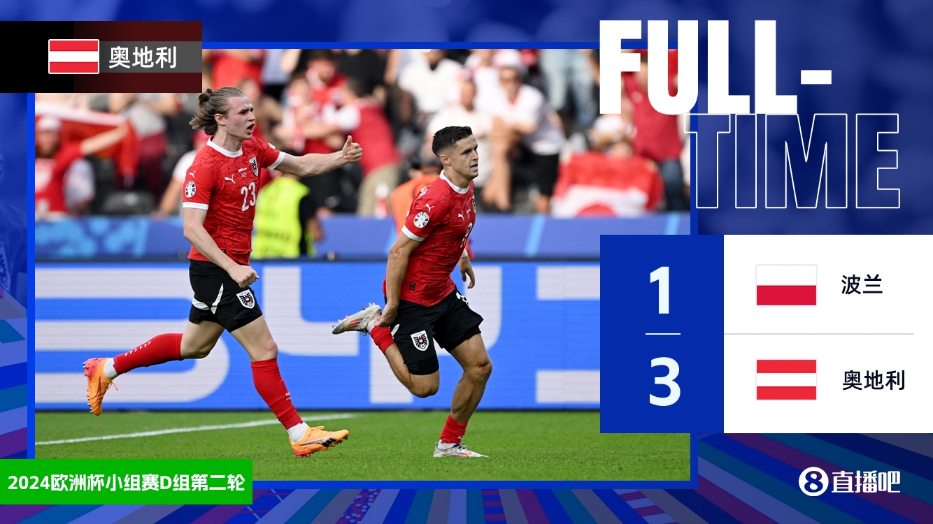 濒临出局!波兰1-3奥地利遭两连败末轮战法国 阿瑙托维奇点射建功