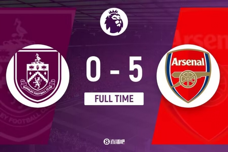 全场比赛结束,最终阿森纳5-0伯恩利。