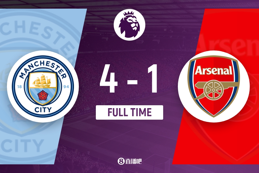 下半场伤停补时5分钟,全场比赛结束,最终曼城4-1阿森纳。