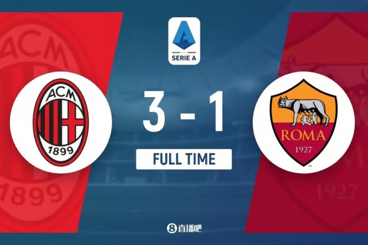 下半场伤停补时5分钟,全场比赛结束,最终AC米兰3-1罗马。