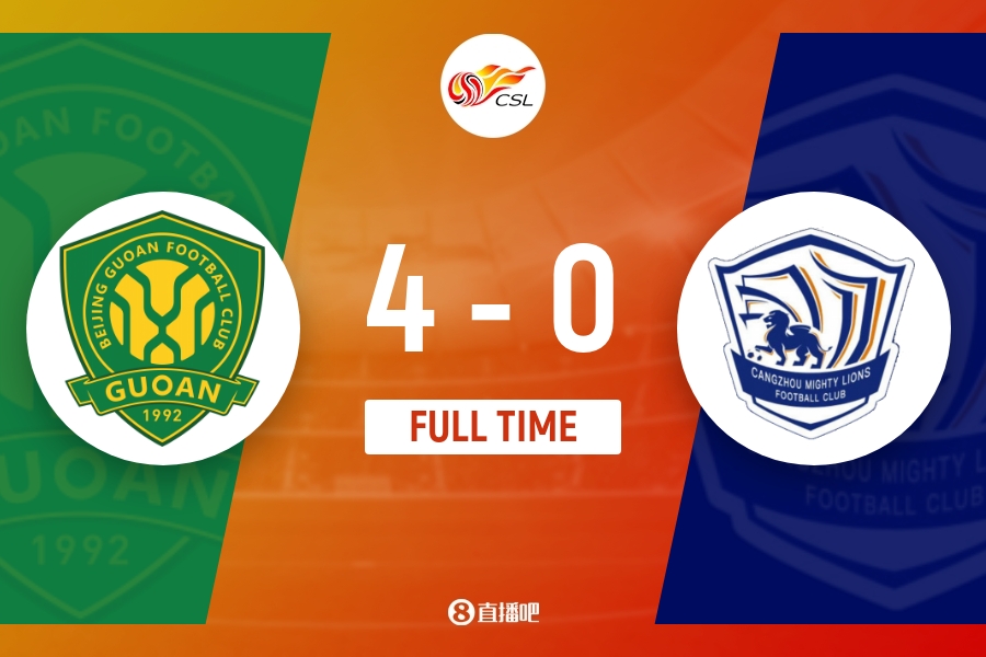 全场比赛结束,国安4-0战胜沧州雄狮。
