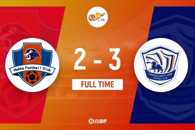 伤停补时5分钟。全场比赛结束, 梅州客家2-3沧州雄狮。
