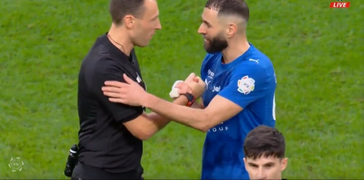 本泽马双响!本泽马主罚点球被卡扎你用腿挡出,随后自己头球补射入网,利雅得新月3-0拉斯永恒!↓