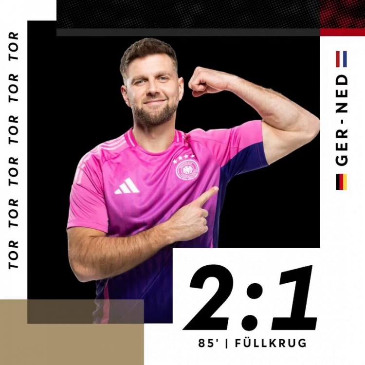 第11分钟,德国队左侧角球机会,战术角球开出,禁区内穆西亚拉得球回做,米特尔施塔特跟进远射将球打进,德国1-1荷兰。↓