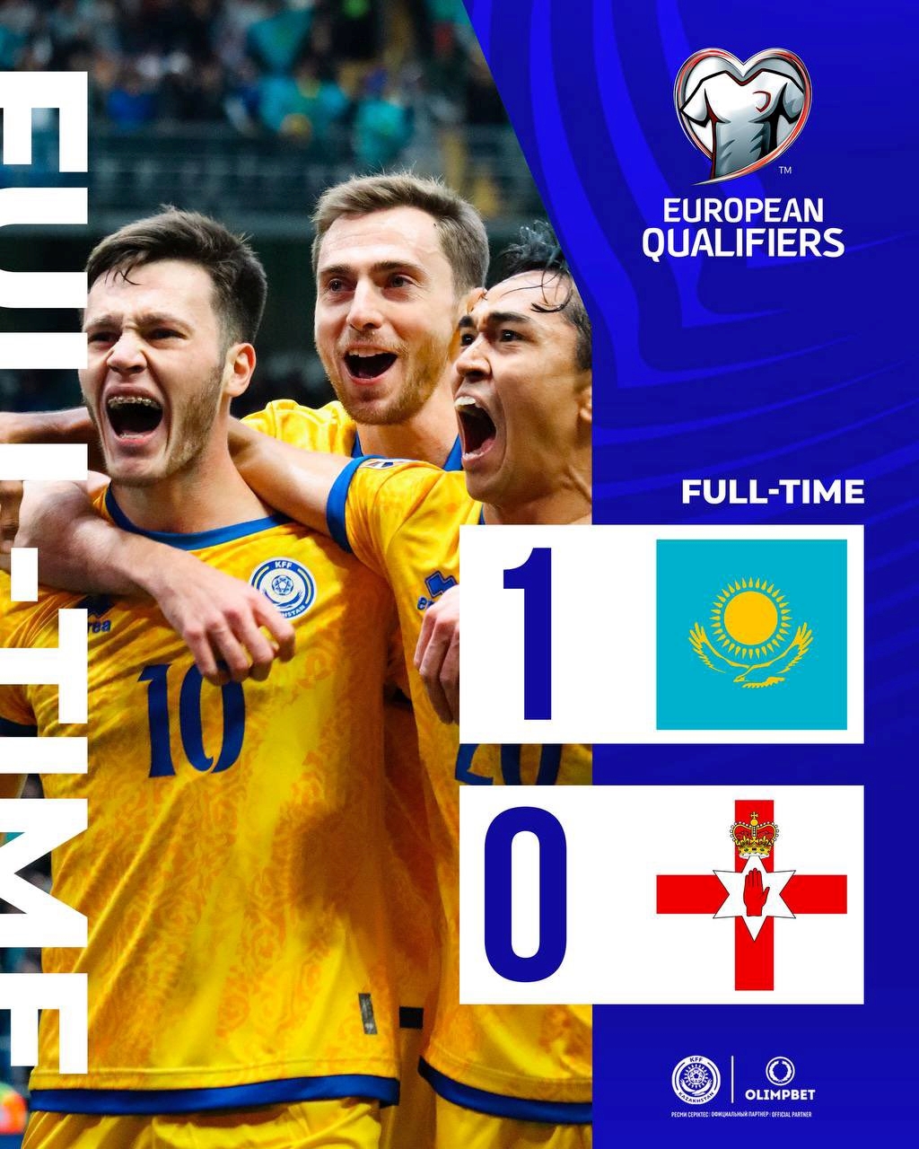 冲击欧洲杯正赛!哈萨克斯坦1-0力克北爱尔兰,积分追平芬兰 超越丹麦